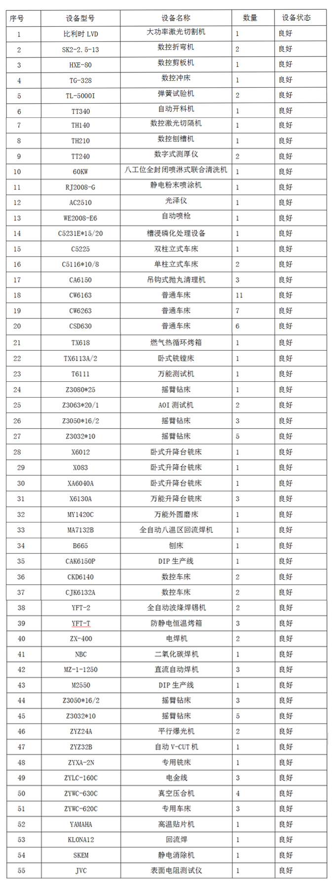 三、生產(chǎn)及檢測(cè)主要設(shè)備清單